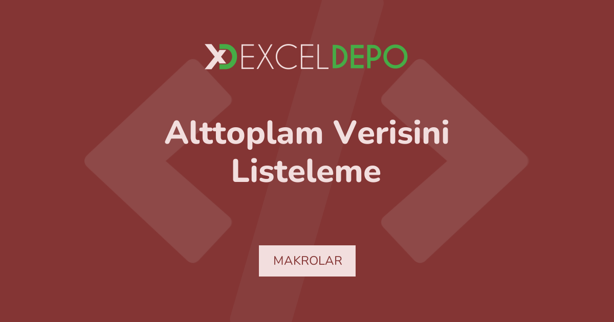 Excel Destekli Alttoplam Verisini Listeleme