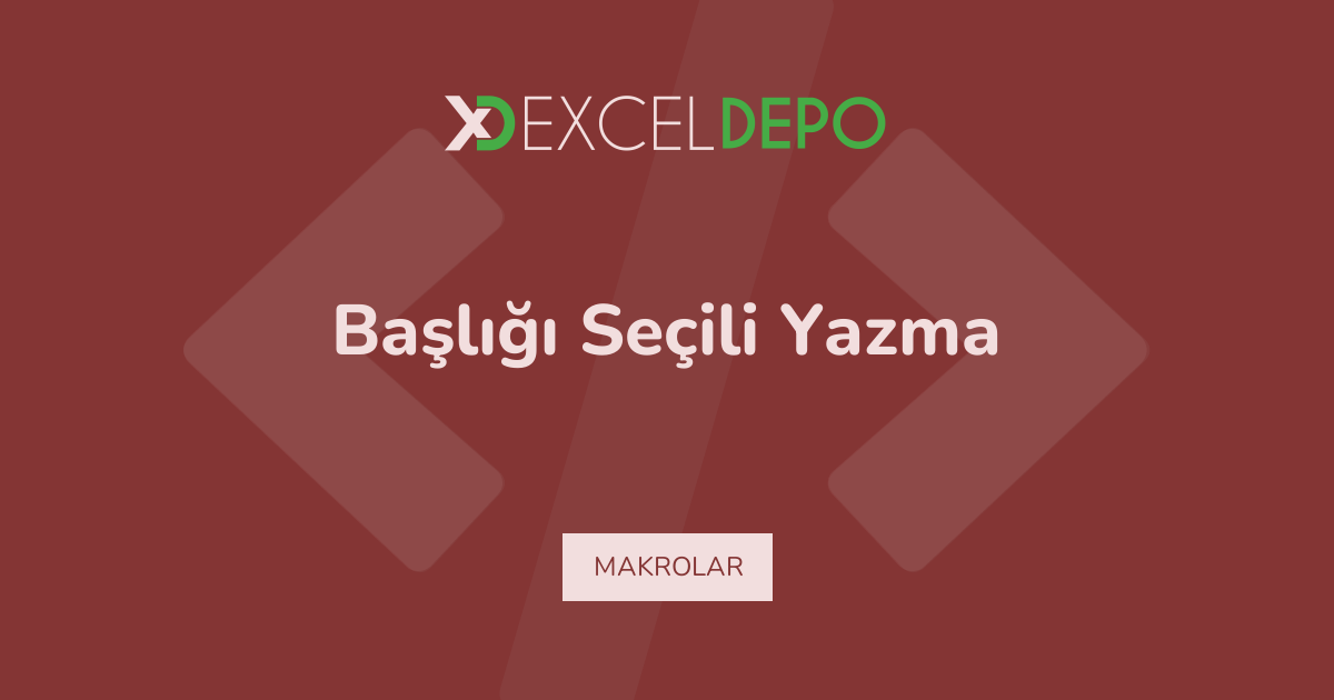 Excel Üzerinde Başlığı Seçili Yazma
