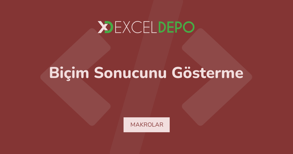 Biçim Sonucunu Gösterme dosyası, makro akışını görünen sayfa düzeni içinde yansıtmaktadır. Ayrıca, satır ve hücre alanları örnek sonucu aynı tabloda taşımaktadır. Böylece, VBA adımları dosyanın gerçek çalışma mantığını açık biçimde göstermektedir. Ancak, görünür veriler tek başına kalmamakta, işlem akışı da dosyada izlenmektedir. Dolayısıyla, Biçim Sonucunu Gösterme arayanlar için anlaşılır bir örnek dosya öne çıkmaktadır.