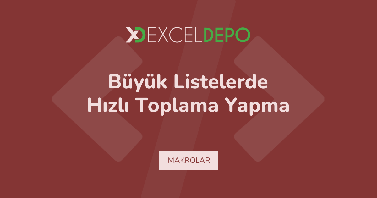Büyük Listelerde Hızlı Toplama Yapma işleminin nasıl yapılacağını öğreten bir Excel dosyası bulunmaktadır.