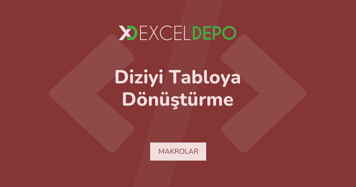 Diziyi Tabloya Dönüştürme işleminin nasıl yapılacağını öğreten bir Excel dosyası bulunmaktadır.