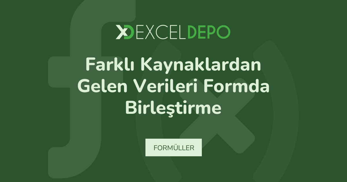 Farklı Kaynaklardan Gelen Verileri Formda Birleştirme işleminin nasıl yapılacağını öğreten bir Excel dosyası vardır.