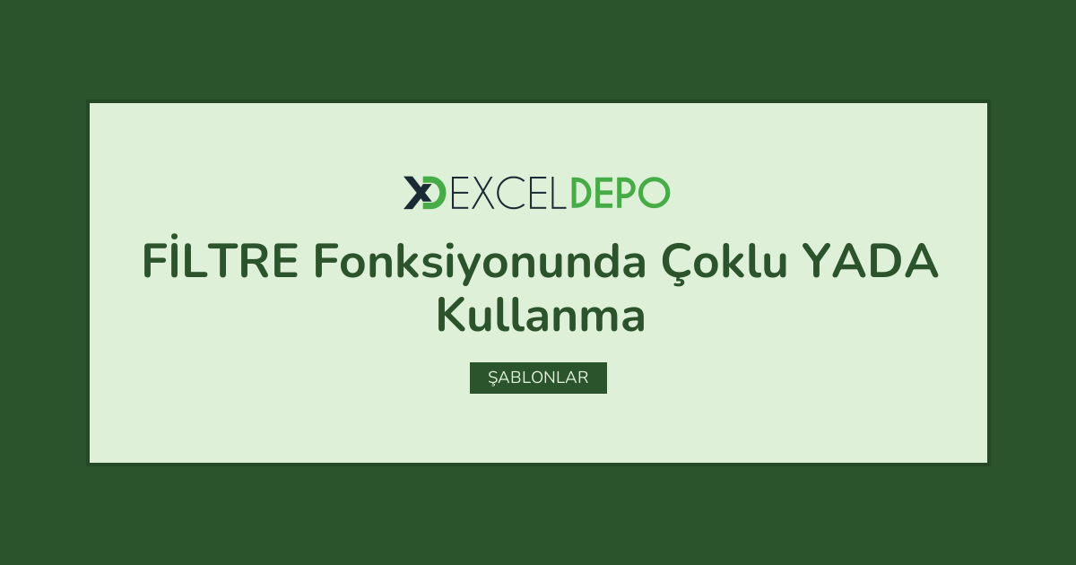 FİLTRE Fonksiyonunda Çoklu YADA Kullanma işleminin nasıl yapılacağını öğreten bir Excel dosyasıdır.