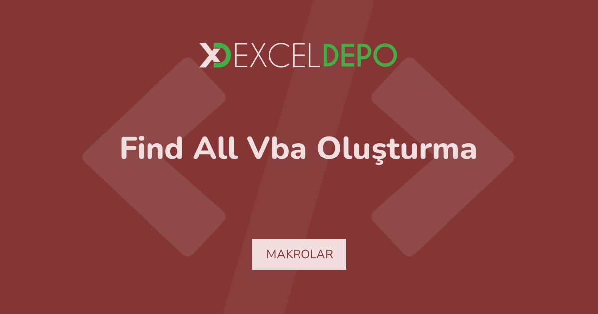 Excel ile Find All Vba Oluşturma