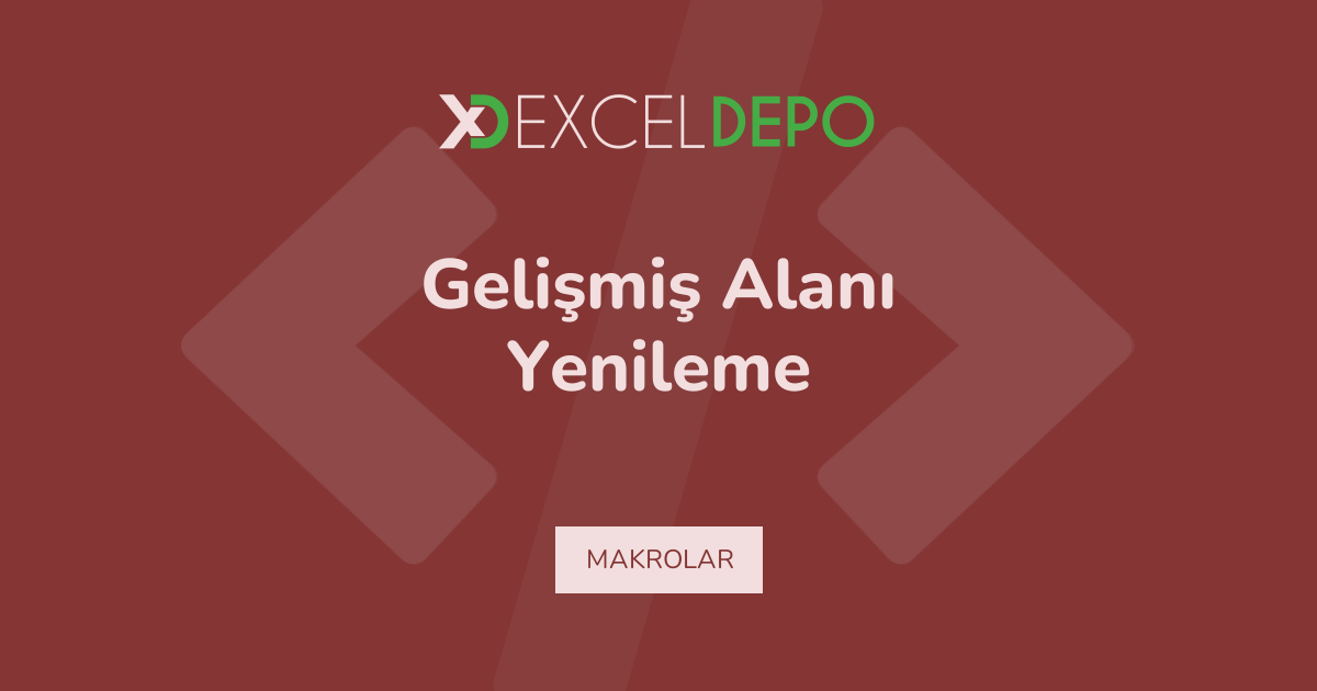 Gelişmiş Alanı Yenileme işleminin nasıl yapılacağını öğreten bir Excel dosyası bulunmaktadır.