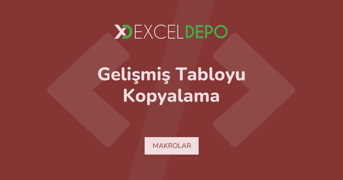 Gelişmiş Tabloyu Kopyalama işleminin nasıl yapılacağını öğreten bir Excel dosyası bulunmaktadır.