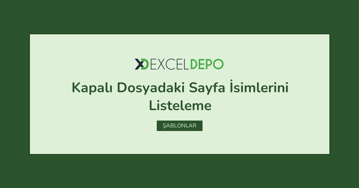 Excel Yöntemi ile Kapalı Dosyadaki Sayfa İsimlerini Listeleme
