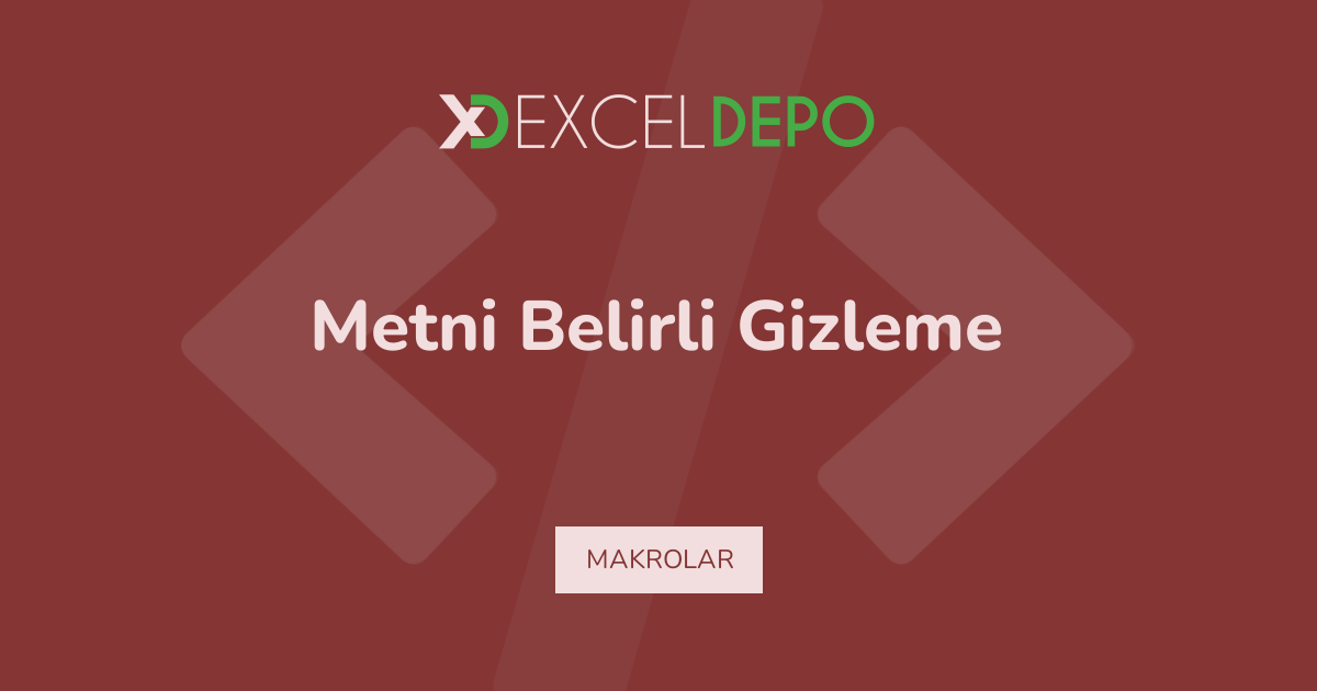 Metni Belirli Gizleme dosyası, VBA makro kodları içeren bir çalışma örneğidir. Ayrıca, tek sayfa üzerinde 1 satırlık veri düzeni bulunmaktadır. Böylece, kullanıcılar kolayca uygulamalı çalışma yapabilmektedir. Ancak, makro güvenlik ayarlarının aktif olması gerekmektedir. Dolayısıyla, pratik bir öğrenme aracı olarak kullanılabilmektedir.