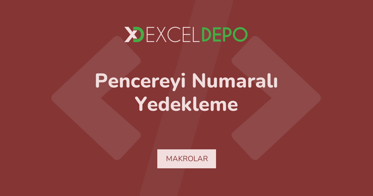 Excel Kullanarak Pencereyi Numaralı Yedekleme