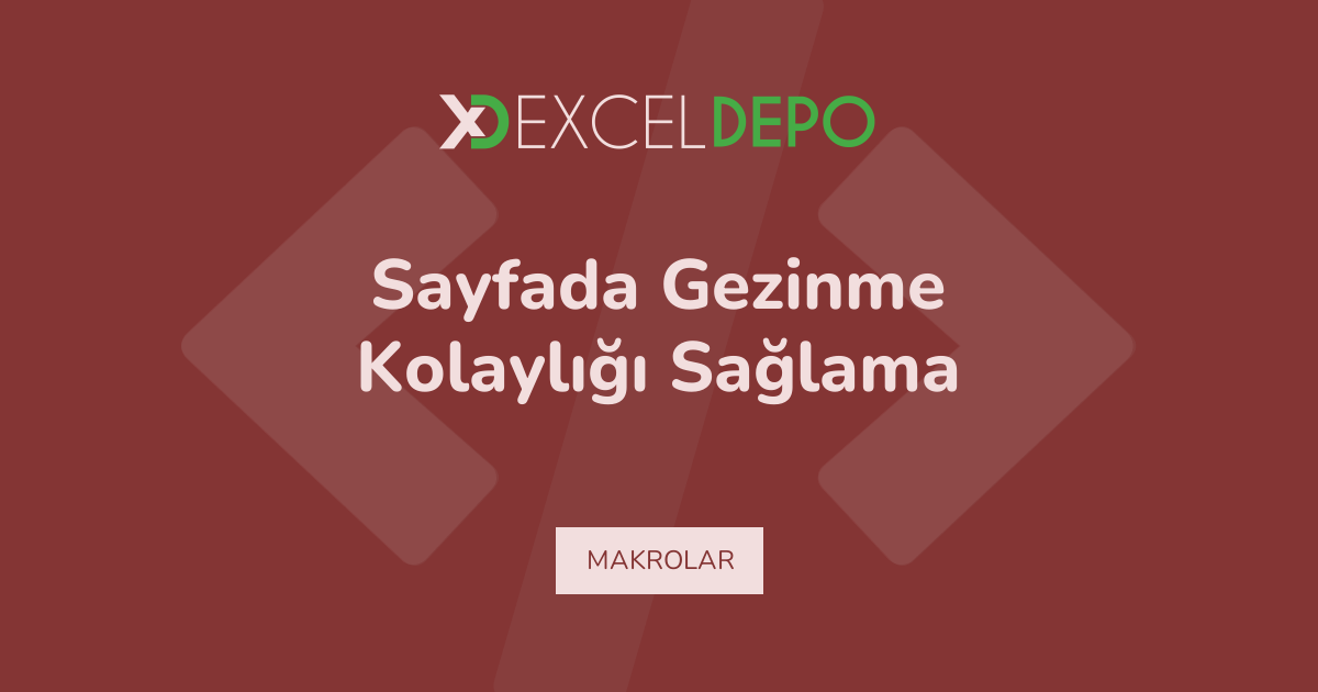 Sayfada Gezinme Kolaylığı Sağlama dosyası, VBA makro kodları içeren bir çalışma örneğidir. Ayrıca, birden fazla sayfa üzerinde 20 satırlık veri düzeni bulunmaktadır. Böylece, kullanıcılar kolayca uygulamalı çalışma yapabilmektedir. Ancak, makro güvenlik ayarlarının aktif olması gerekmektedir. Dolayısıyla, pratik bir öğrenme aracı olarak kullanılabilmektedir.