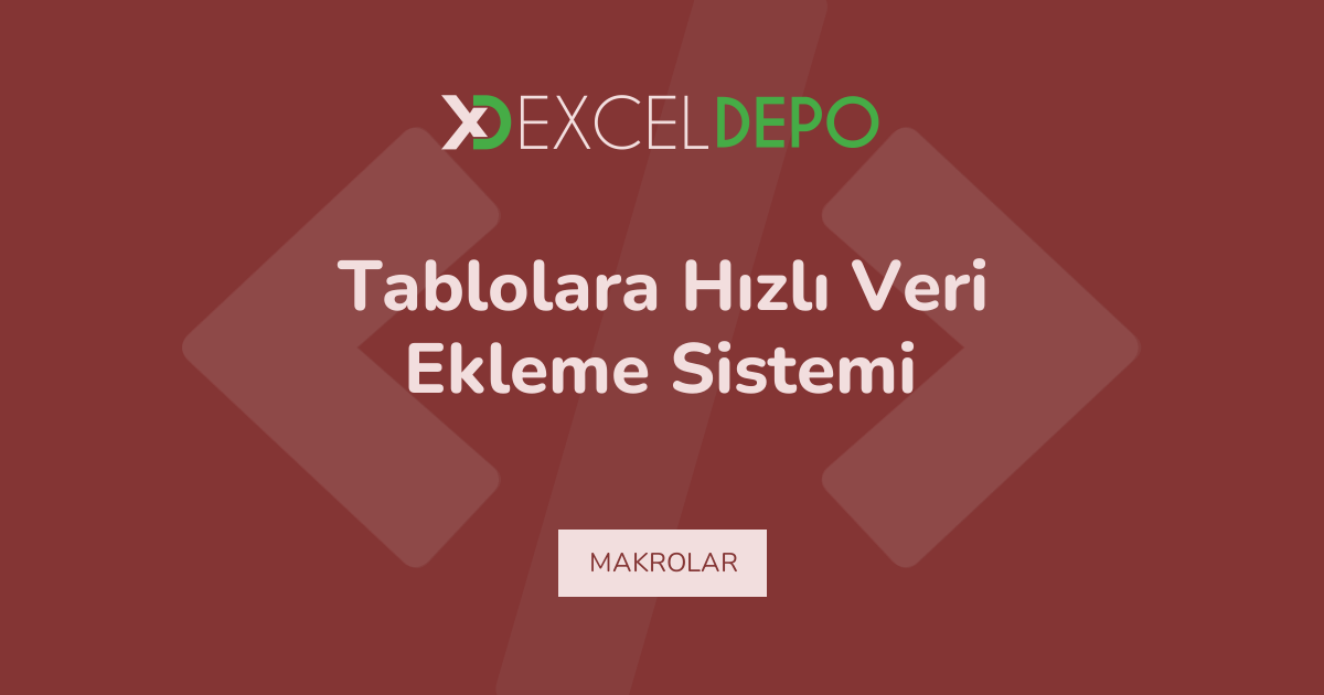 Tablolara Hızlı Veri Ekleme Sistemi işleminin nasıl yapılacağını öğreten bir Excel dosyası bulunmaktadır.
