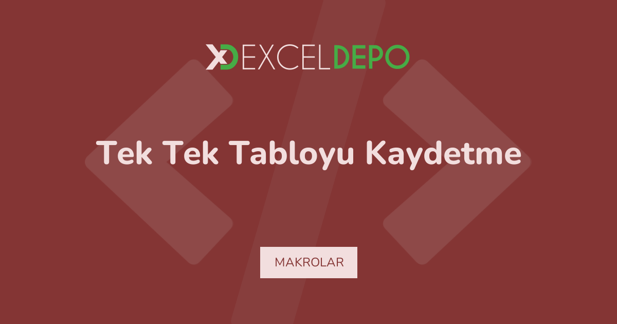 Tek Tek Tabloyu Kaydetme işleminin nasıl yapılacağını öğreten bir Excel dosyası bulunmaktadır.
