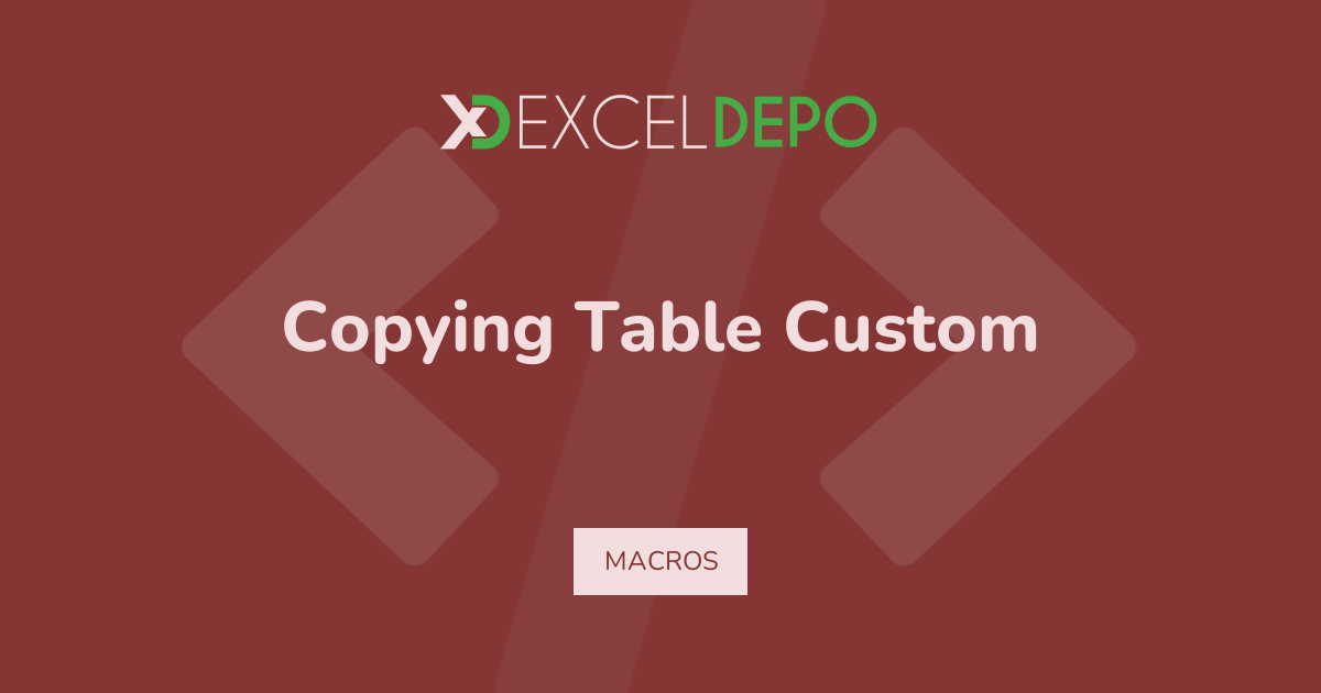 This workbook demonstrates copying table custom using VBA macros on a 119-row data layout.