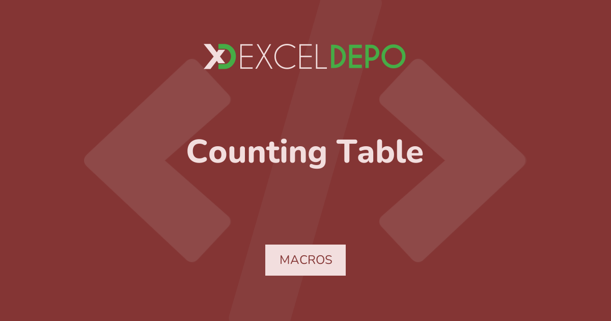 This workbook demonstrates counting table using VBA macros on a 13-row data layout.