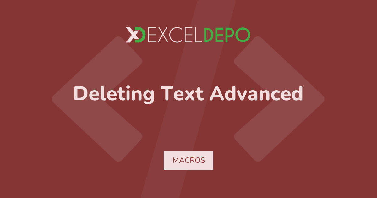 This workbook demonstrates deleting text advanced using VBA macros on a 1-row data layout.