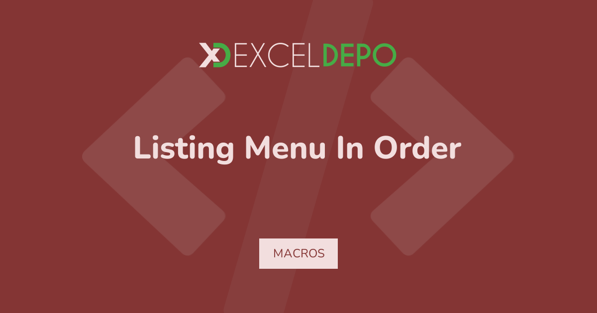 Excel Listing Menu in Order