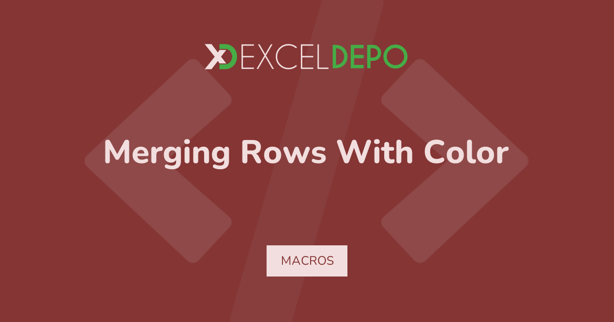 This workbook demonstrates merging rows with color using VBA macros on a 13-row data layout.