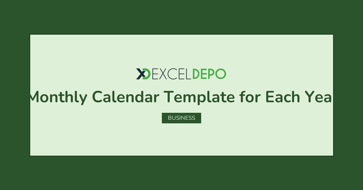 Excel Professional Monthly Calendar Template for Each Year