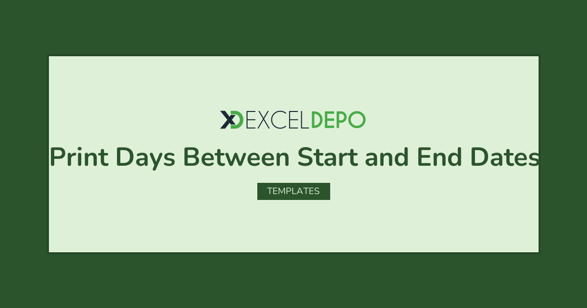An Excel file that teaches how to perform Print Days Between Start and End Dates operation.