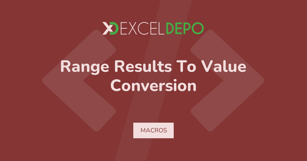 This workbook demonstrates Range Results To Value Conversion with VBA based cell conversion.
