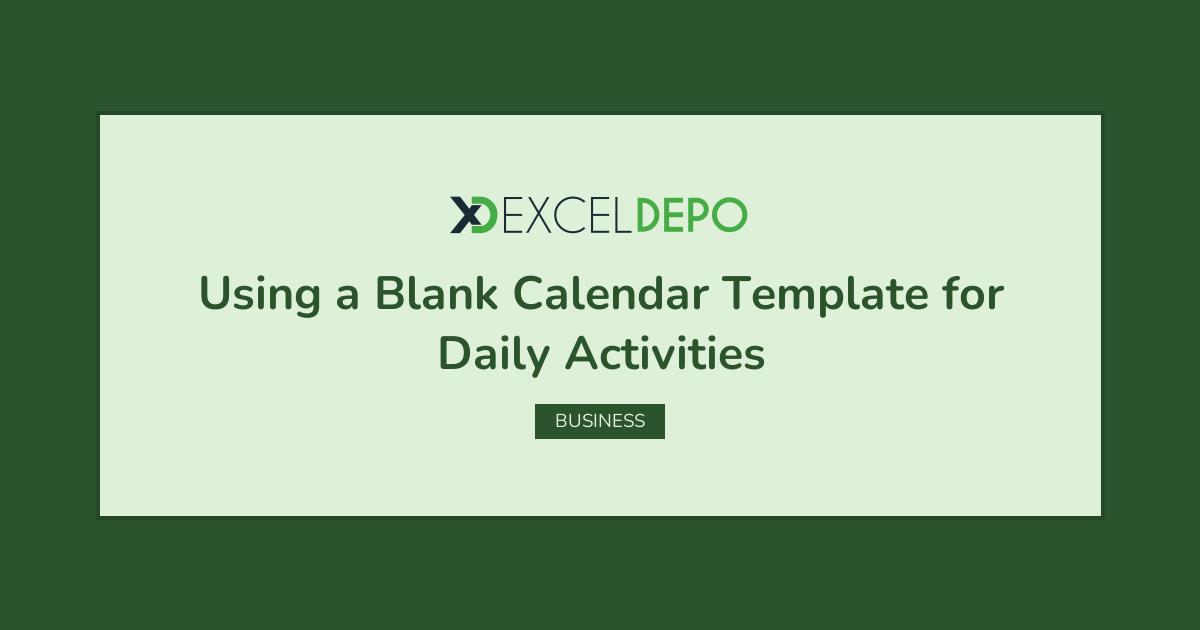 Excel Spreadsheet for Using A Blank Calendar Template for Daily Activities